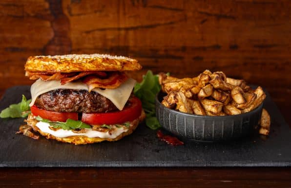 Skvělý burger i bez housky? Ano, jde to. Buď zcela housku vynecháte, anebo ji nahradíte kolečky zeleniny či listy salátu. Ale co třeba udělat ze zeleniny placky a mezi ně pak vložit šťavnatý kousek mletého hovězího? Budete překvapení, jak skvěle to funguje! ♥️ Detail receptu »